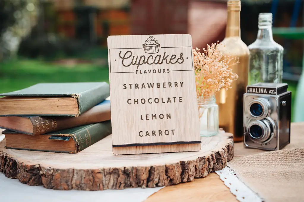 Whether you’re serving classic vanilla, decadent chocolate, or fun seasonal flavours, this elegant wedding sign lets guests know exactly what sweet treats are on offer while adding charm and personality to your display.