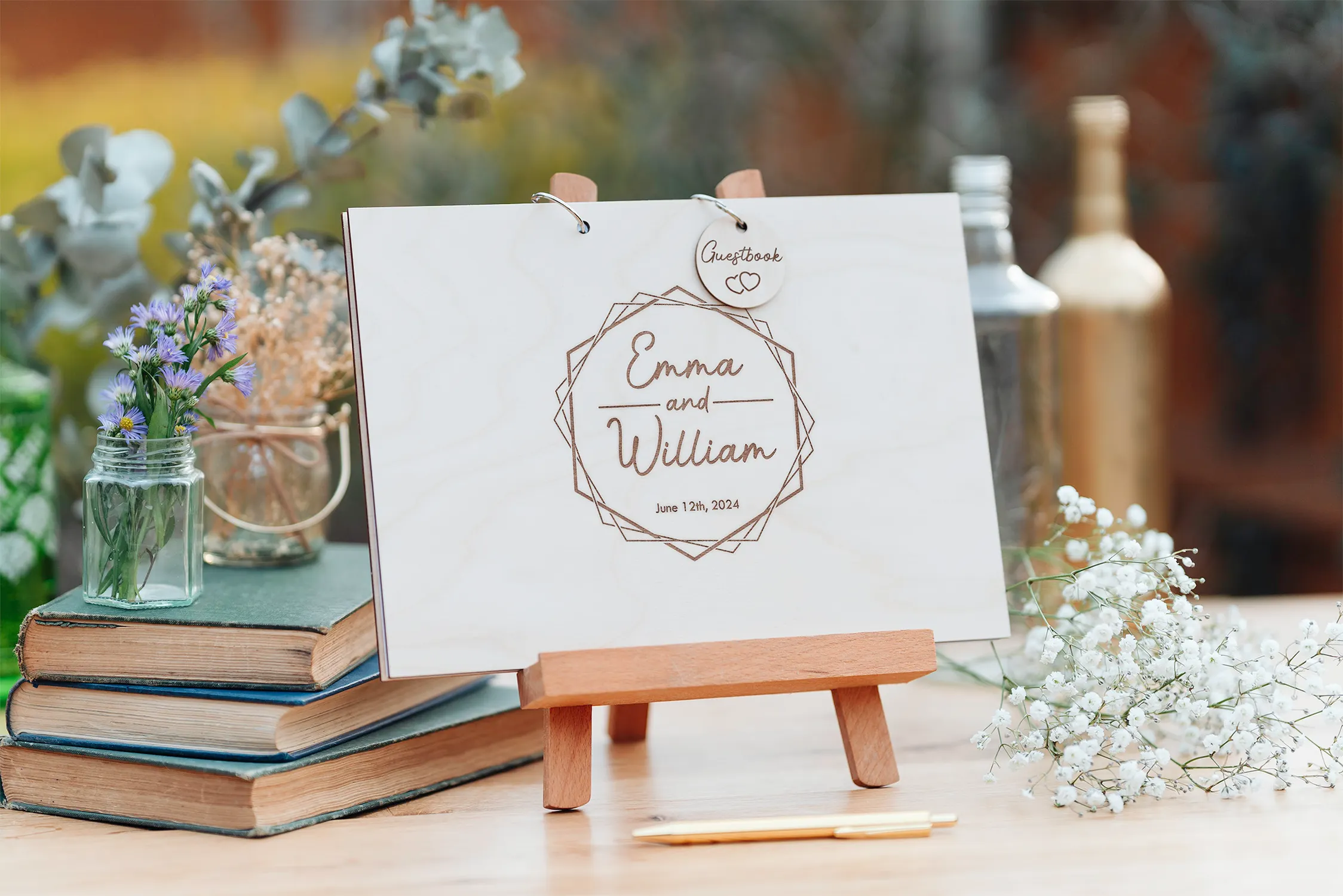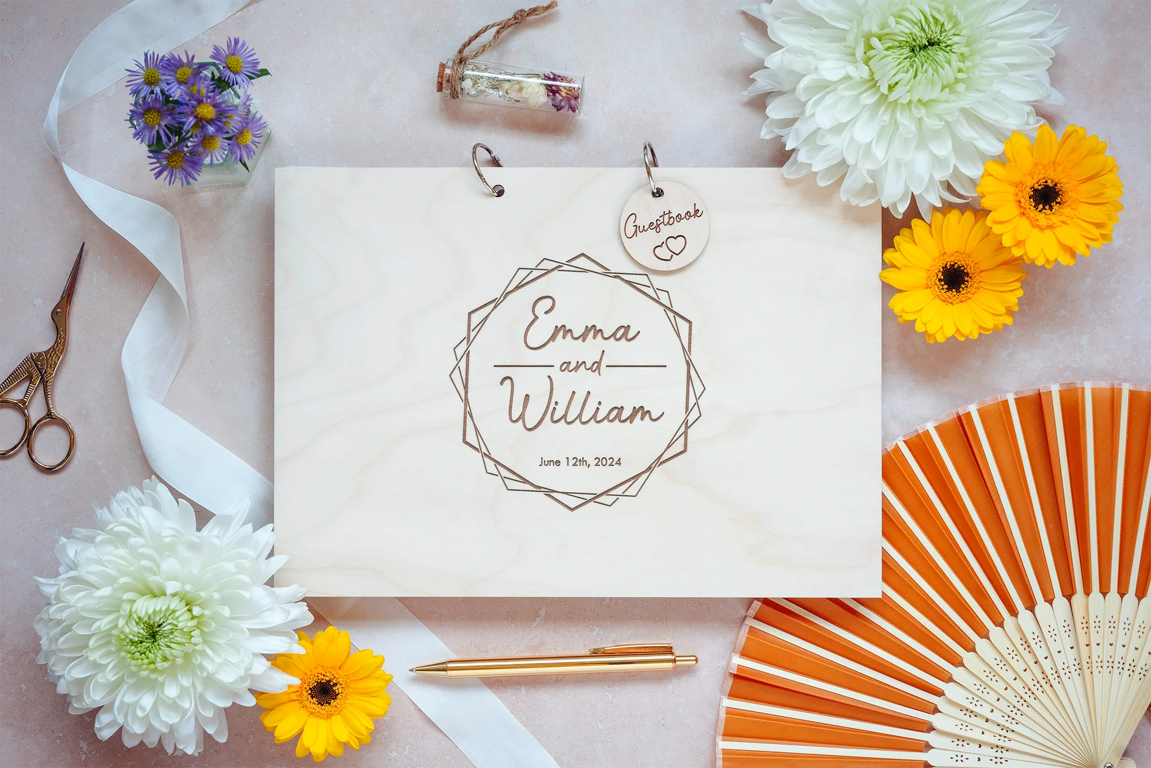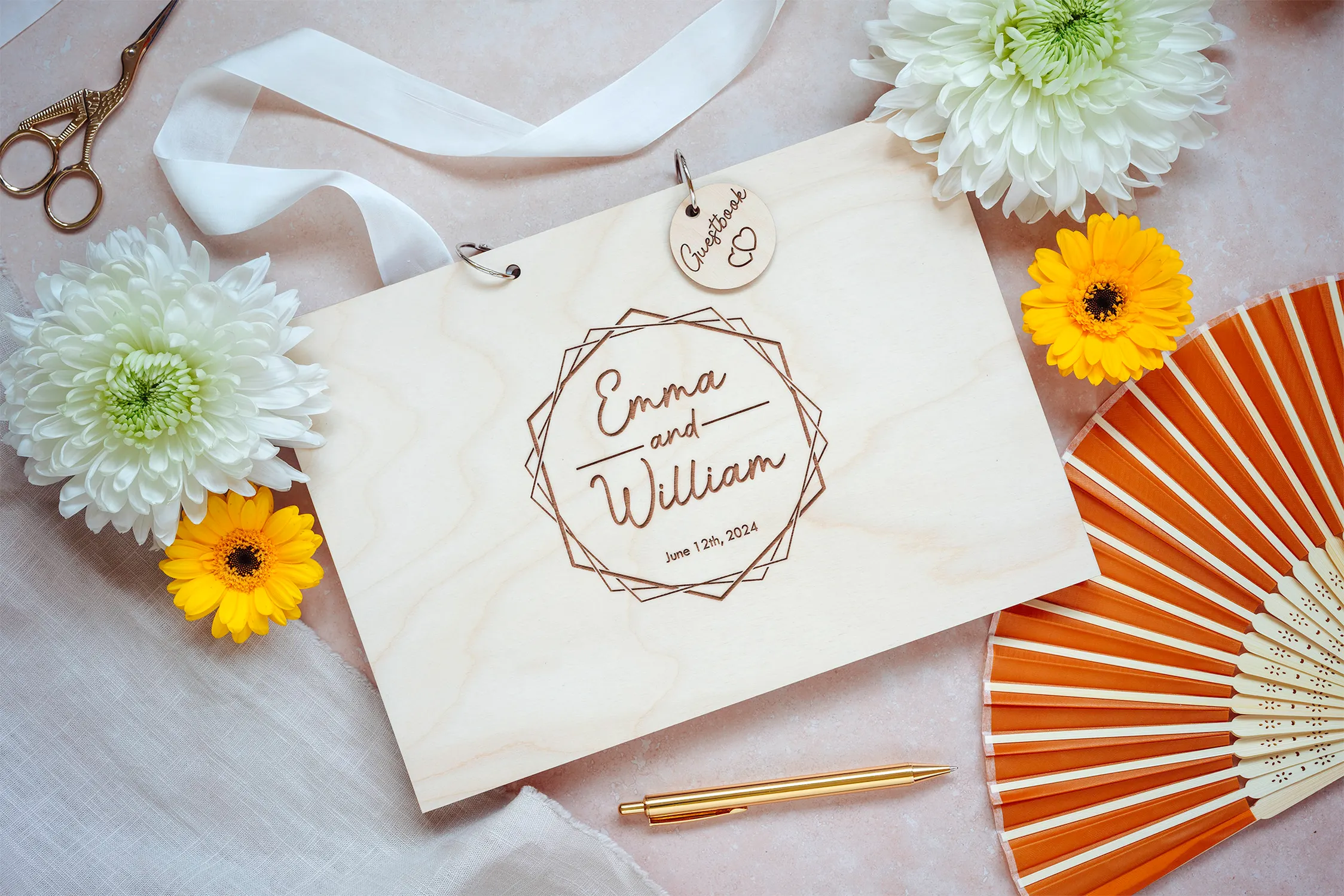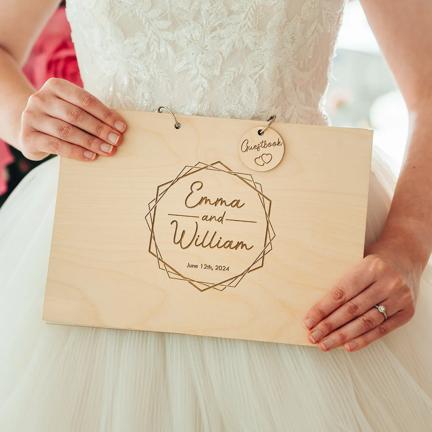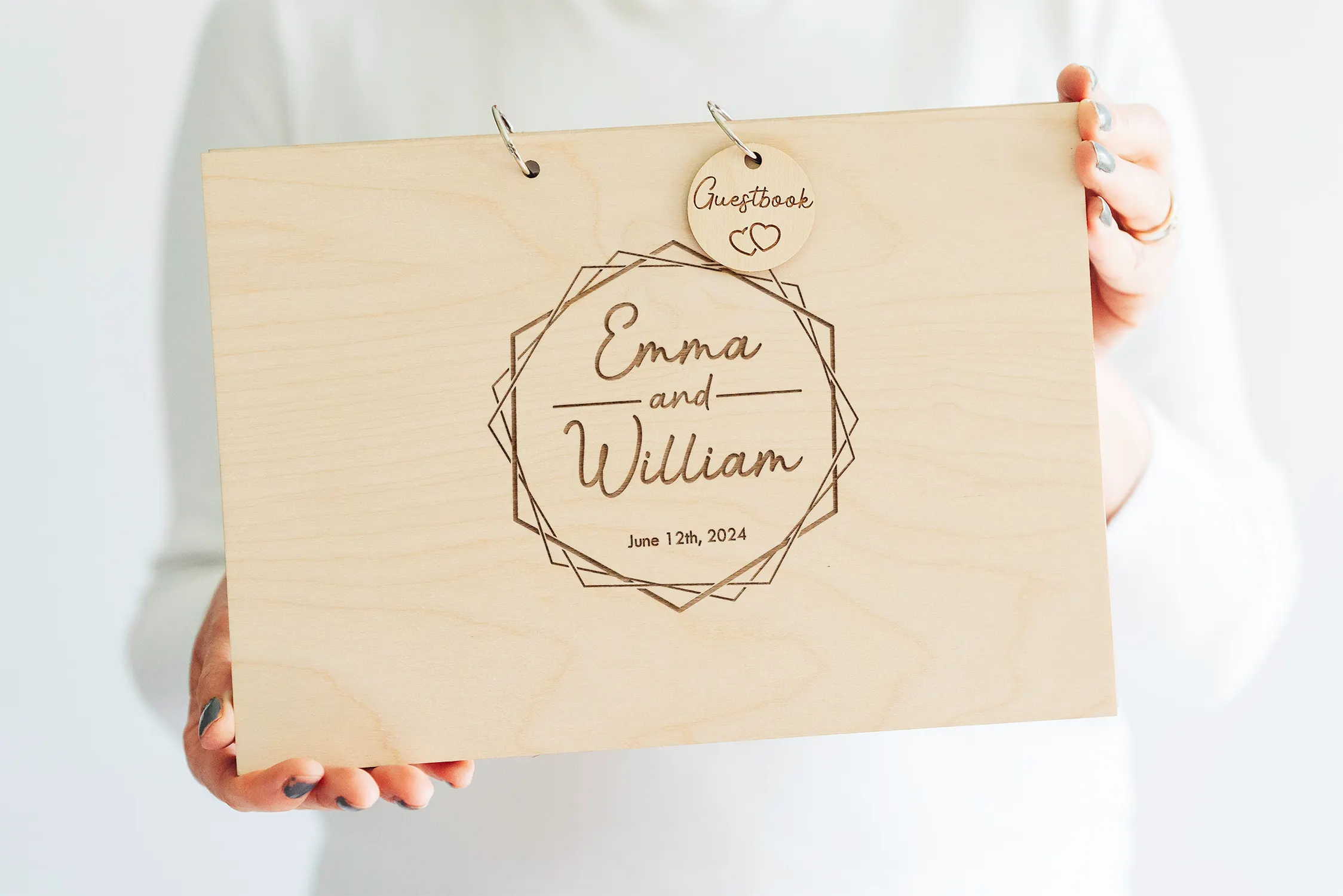Modern and Geometric Wedding Guest Book – Engraved with your names and wedding date enclosed in a timeless design.