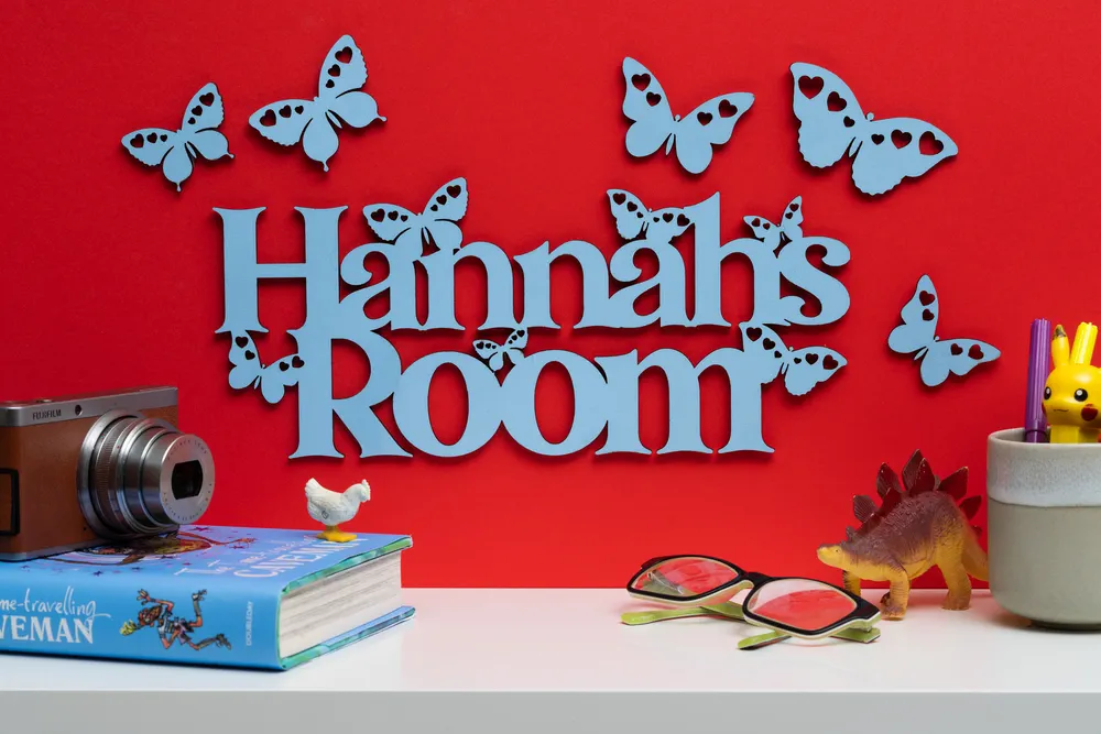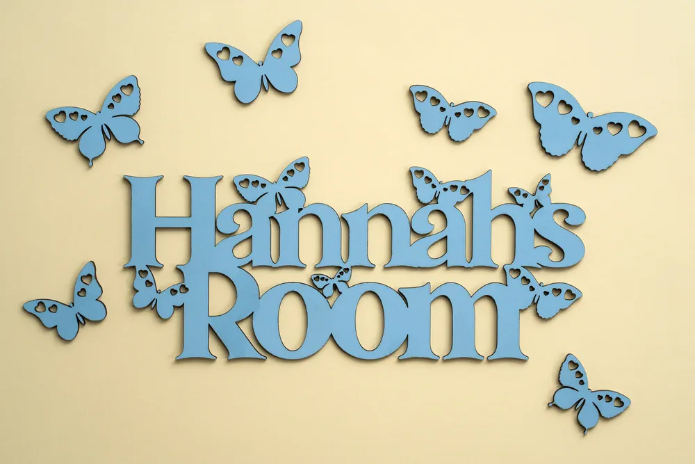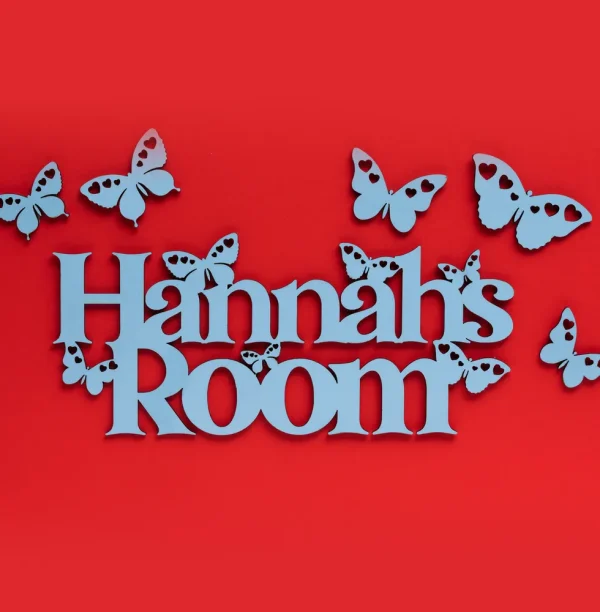 The beautiful Butterfly Name Sign is perfect for any girl or boy. Each Personalised plaque comes with 6 individual butterflies to add an extra dimension to this wall plaque. Looks great on a wall or a door.