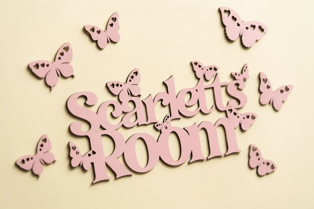 Made from MDF, this custom sign can be painted in either pink, blue, silver or gold – and can be mounted with double-sided tape (not supplied).
