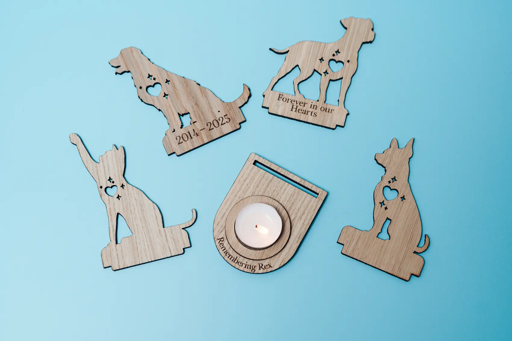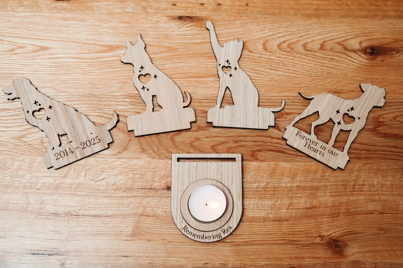 Design – Made from Oak, our Pet Remembrance gifts are designed to hold a standard Tealight.