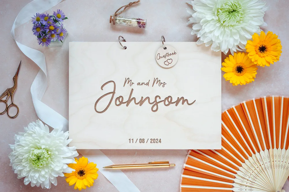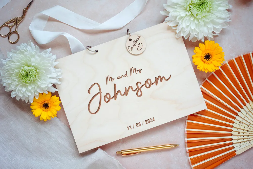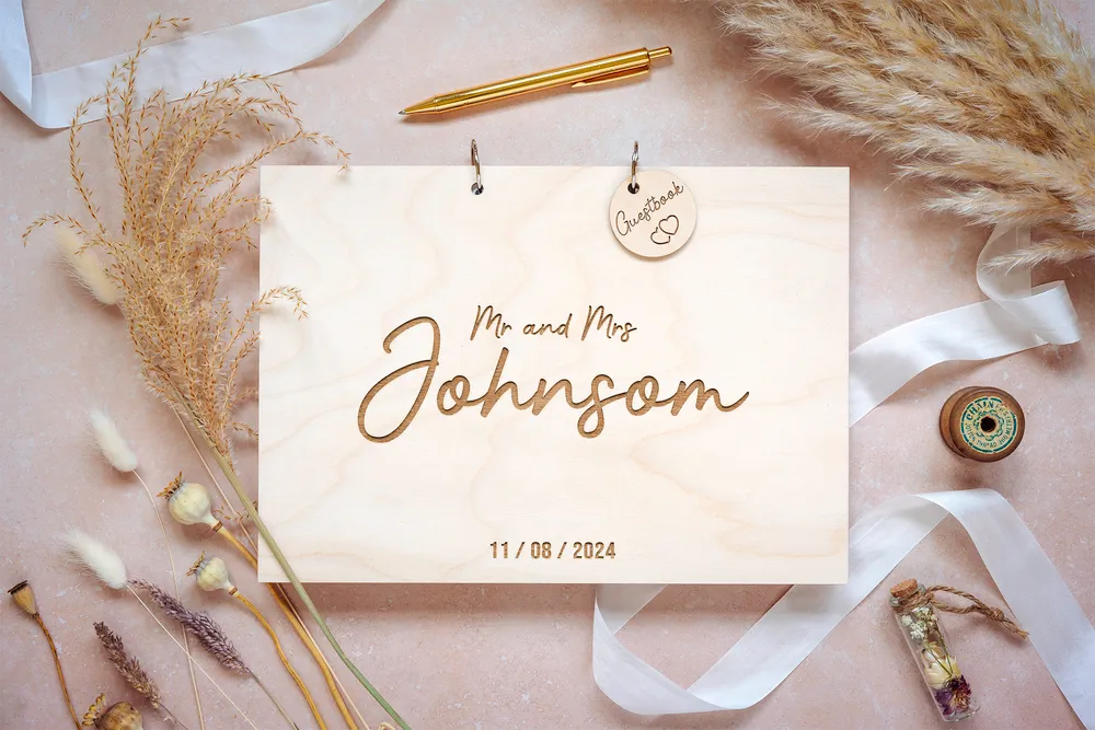 A Bold and Beautiful Surname Wedding GuestBook – Engraved with your surname and wedding date. Every book we make is one of a kind. It’s the perfect wedding or engagement party gift that couples can cherish and revisit for years to come.