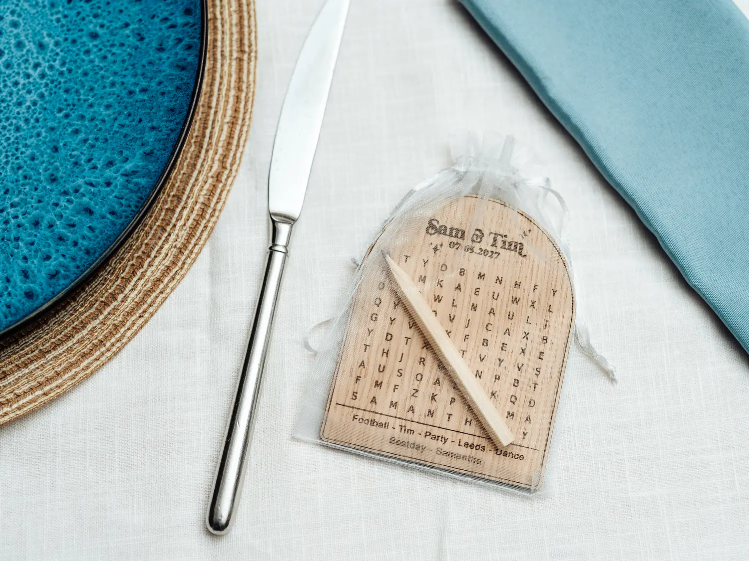 These could be a pet, a special moment, a honeymoon destination, or a favourite football team! anything really that means something to you and your wedding guests. We only ask that each word is no more than 9 letters!