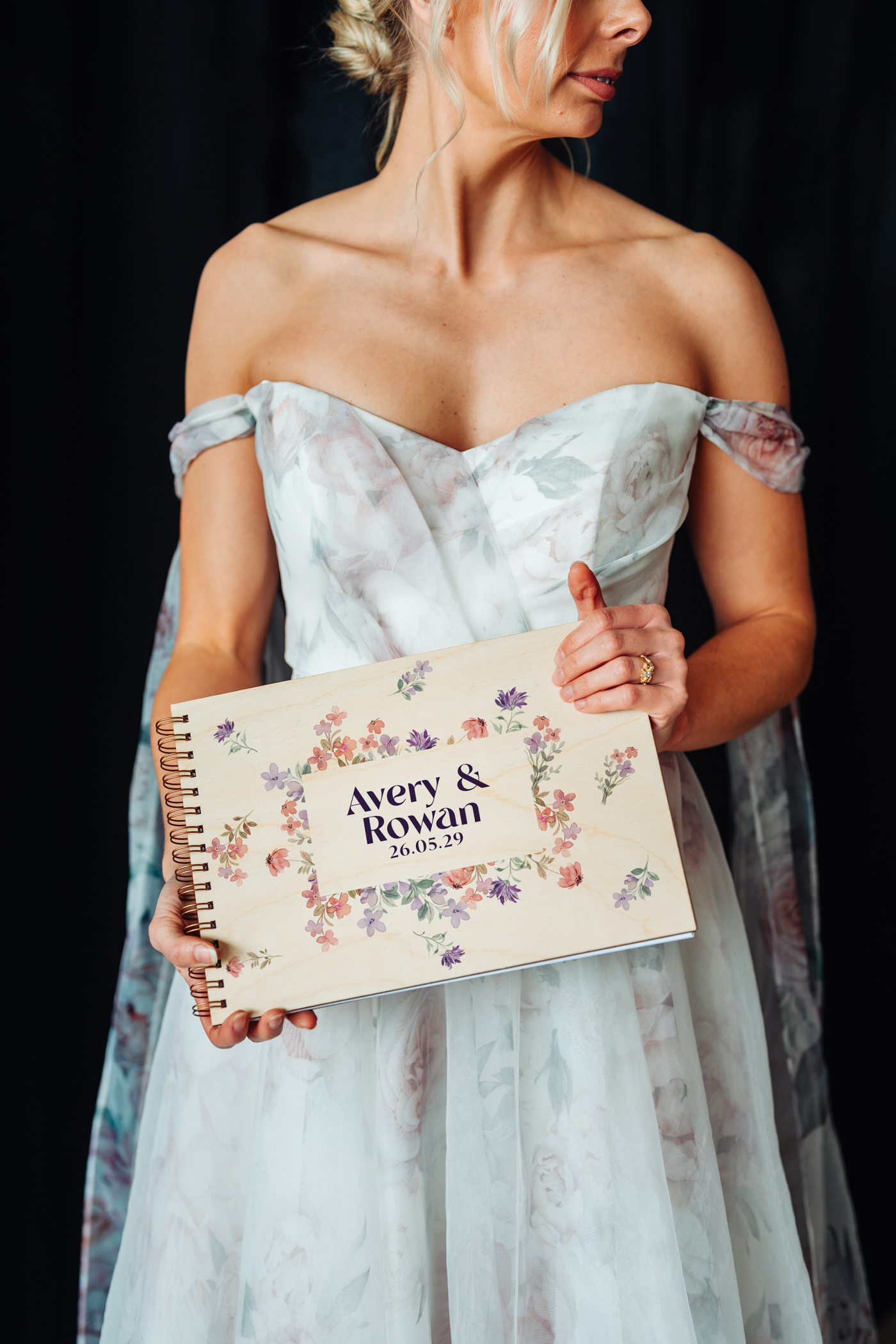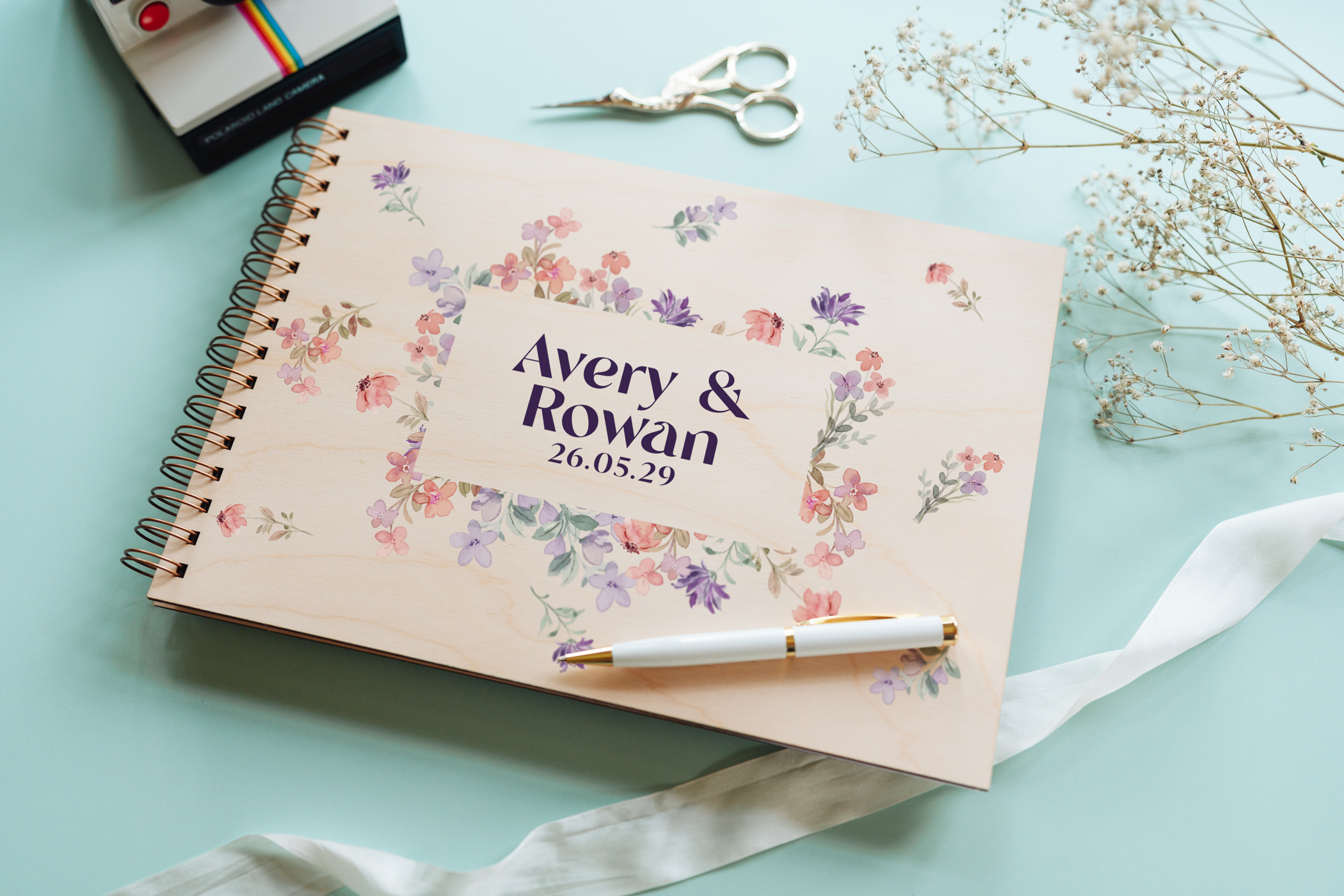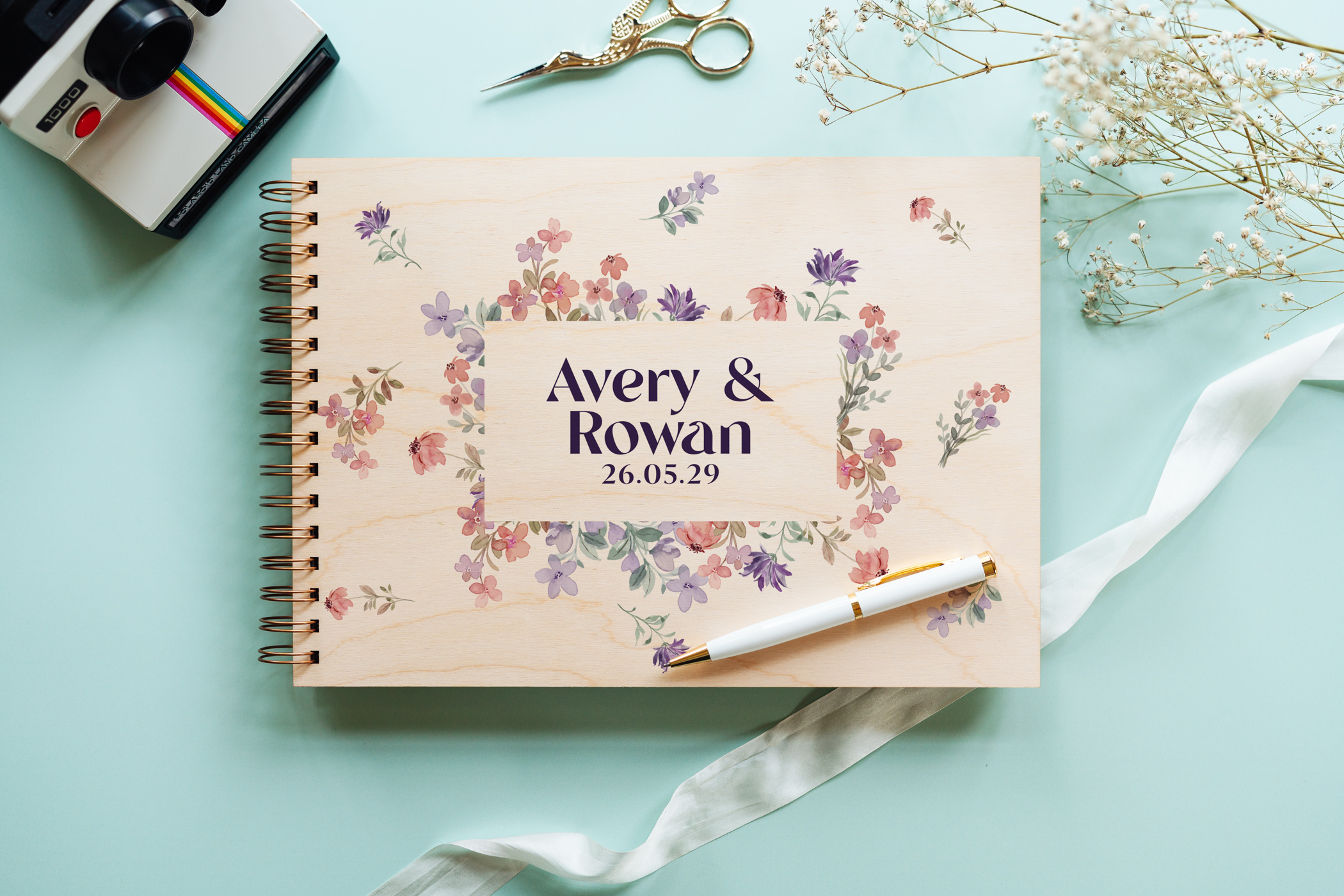 Your names and wedding date are colour-printed directly onto a natural birch wood cover, with waterproof, long-lasting inks that let the beautiful wood grain show softly through โ a warmth no paper or fabric cover can replicate. The result is part keepsake, part centrepiece: stunning on your signing table, and just as beautiful on a coffee table for years to come.